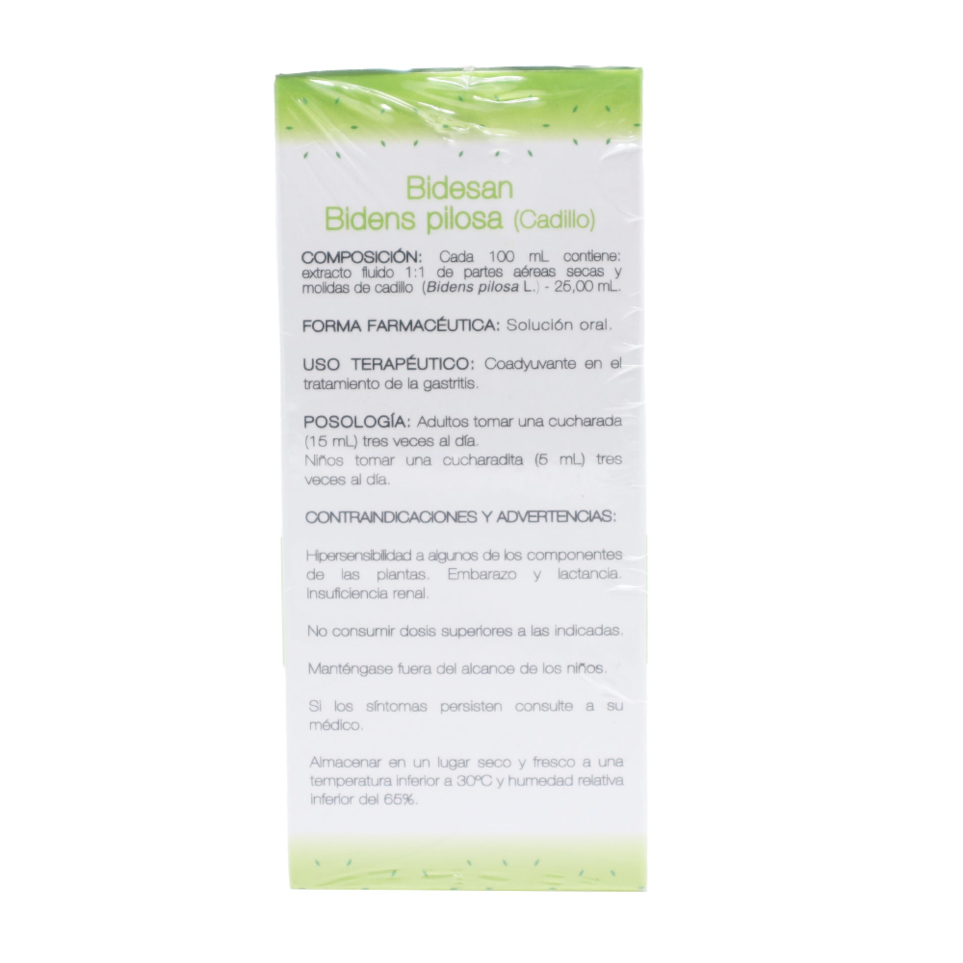 El cadillo, como componente principal de Bidesan, ayuda a reducir la inflamación del revestimiento del estómago, proporcionando un alivio natural para los síntomas de la gastritis.
