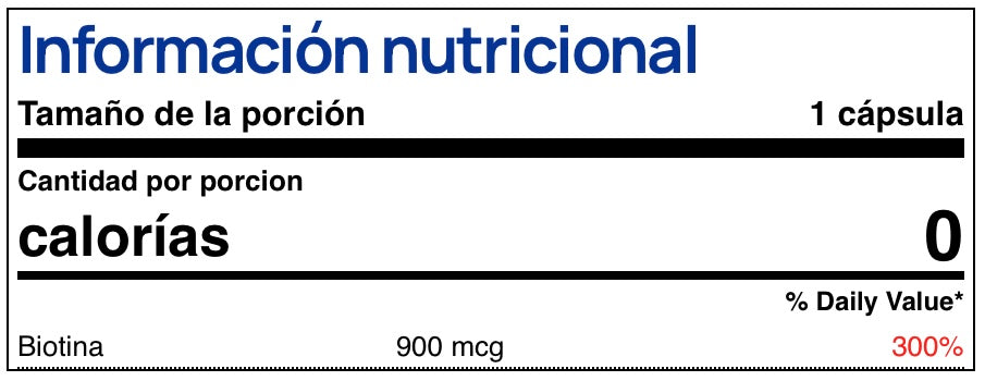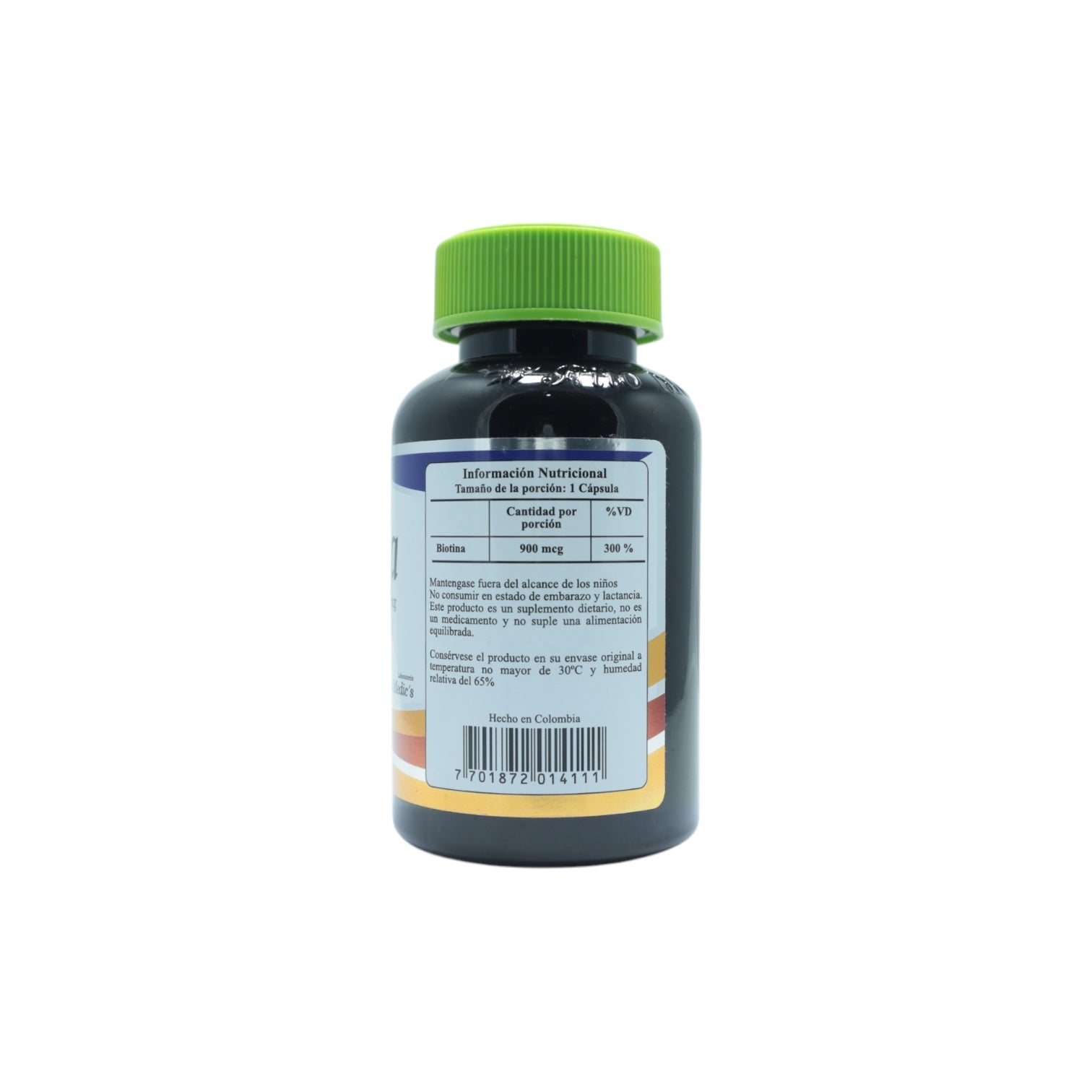 Biotina 900 mcg es un suplemento ideal para quienes buscan fortalecer su cabello y uñas. Contribuye a reducir la caída del cabello y nutre los folículos, lo que permite un crecimiento capilar más fuerte y voluminoso. Además, estimula la producción de queratina, favoreciendo la salud de las uñas y ayudando a evitar que se quiebren o descamen. También apoya la regeneración de la piel, promoviendo una apariencia radiante y saludable.
