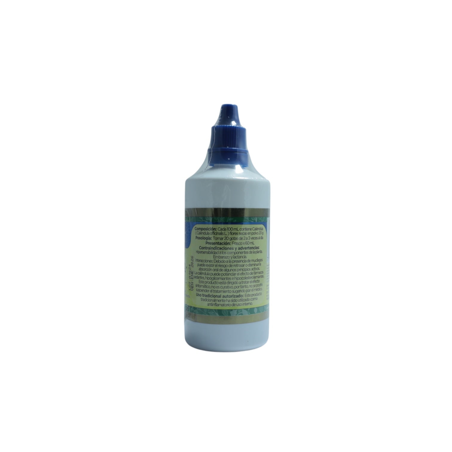 Cada 100 ml contiene caléndula (Caléndula officinalis L.) flores secas en polvo 20 g.