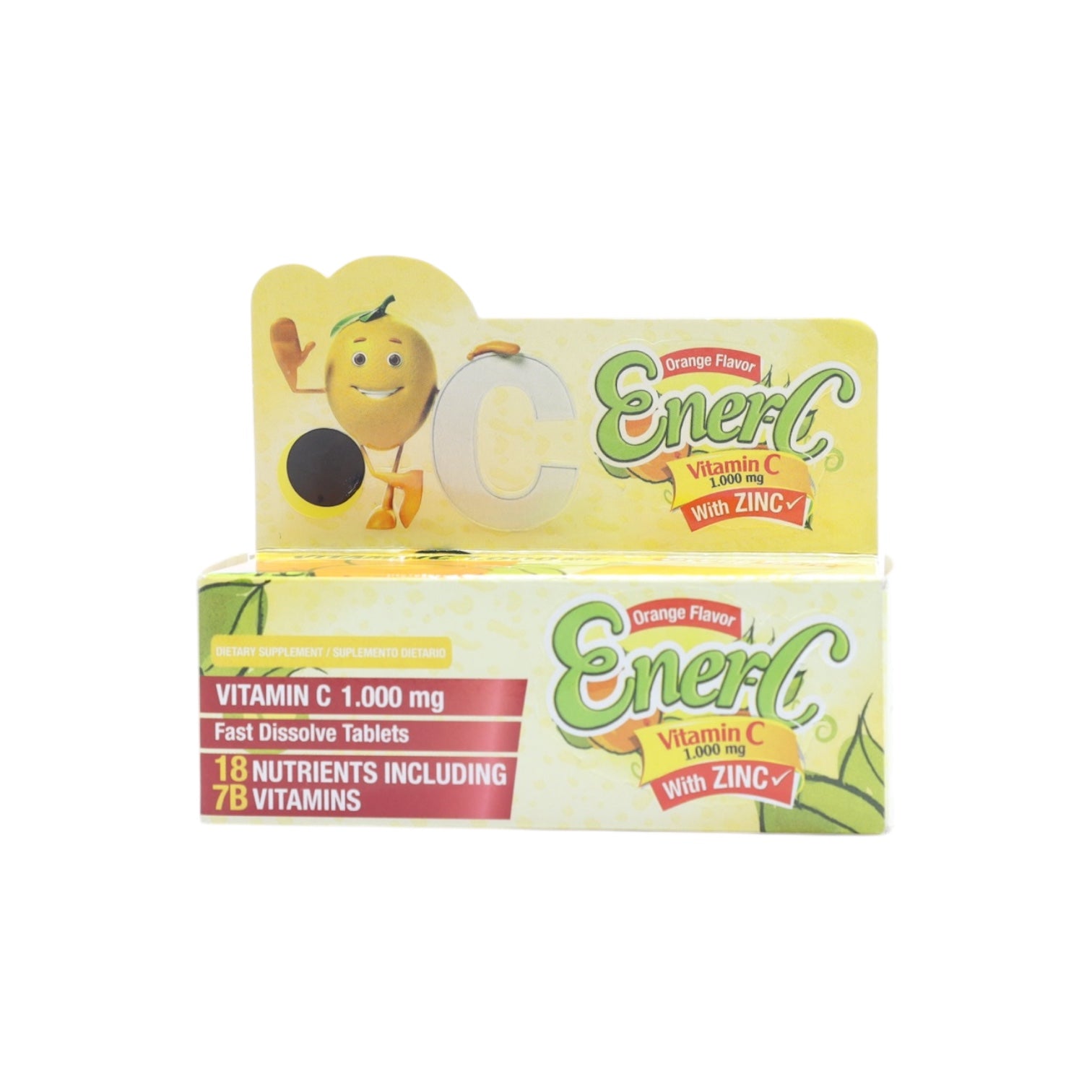 Ener-C es una fórmula efervescente con 1,000 mg de vitamina C, zinc y 18 nutrientes esenciales que refuerzan el sistema inmunológico, brindan energía natural y promueven una piel saludable. Su formato permite una rápida absorción y ofrece un refrescante sabor a naranja, ideal para mantenerte hidratado y revitalizado cada día.