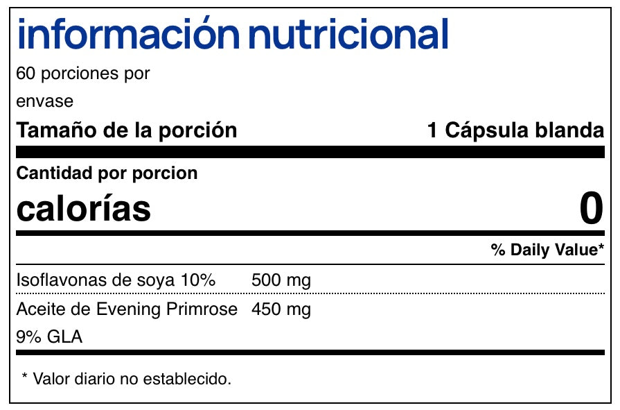 La combinación de isoflavonas de soja y aceite de onagra ofrece una fórmula que mejora el estado de ánimo, reduce la fatiga y apoya el bienestar general durante la menopausia.