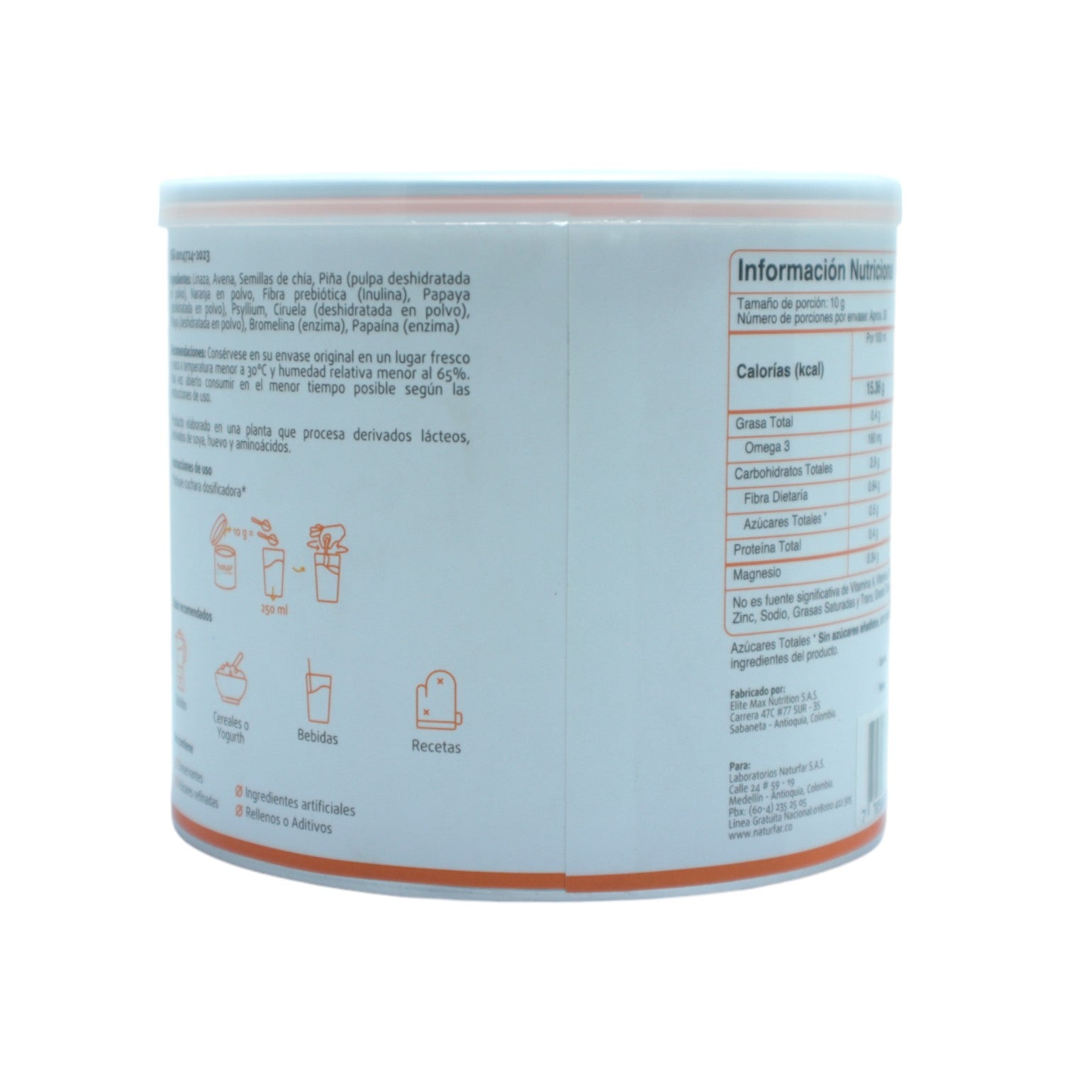 La fibra prebiótica regula el tránsito intestinal, promoviendo una digestión eficiente y ayudando a reducir el estreñimiento.