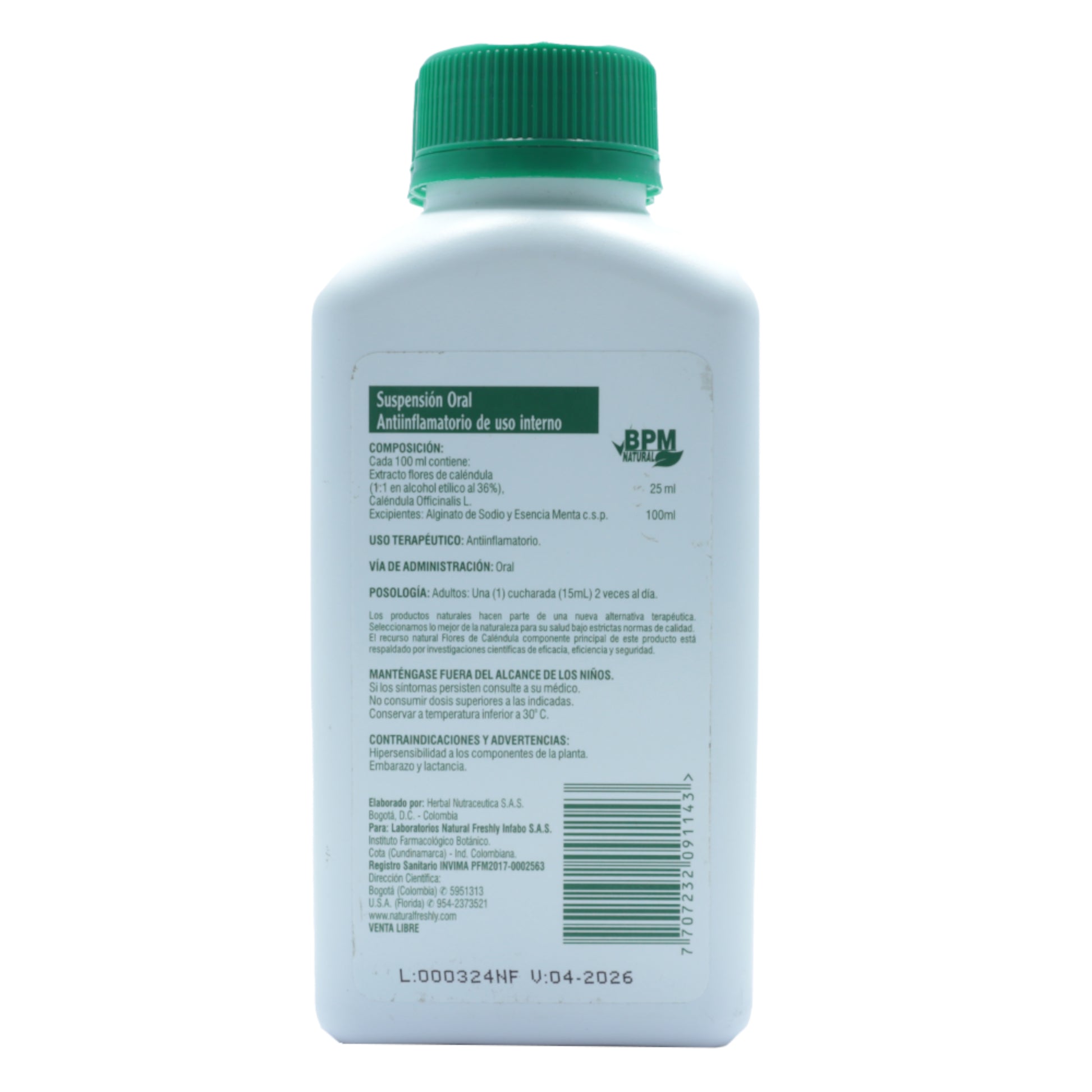 - Caléndula Officinalis L. Excipientes Alginato de Sodio y Esencia Menta c.s.p 100 ml