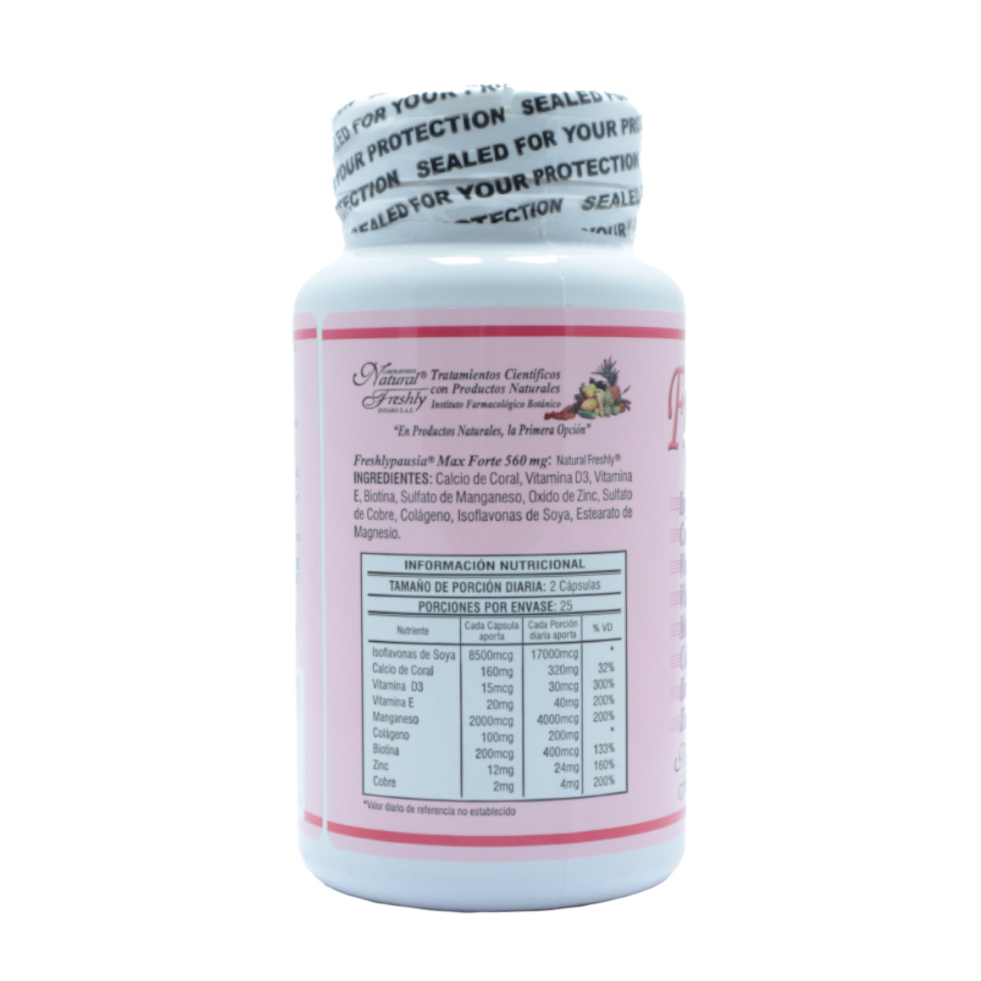 Freshlypausia Max Forte es un suplemento natural formulado específicamente para apoyar a las mujeres durante la menopausia y los trastornos hormonales. Gracias a su combinación de isoflavonas de soya, coral calcio, vitamina D3, colágeno, biotina y otros nutrientes clave, ayuda a aliviar los síntomas de la menopausia, como los sofocos, mientras refuerza la salud ósea, mejora la elasticidad de la piel y fortalece el cabello. Además, su potente acción antioxidante, brindada por la vitamina E y el zinc, protege las células del envejecimiento prematuro, promoviendo un bienestar general y equilibrio metabólico en esta etapa de la vida.