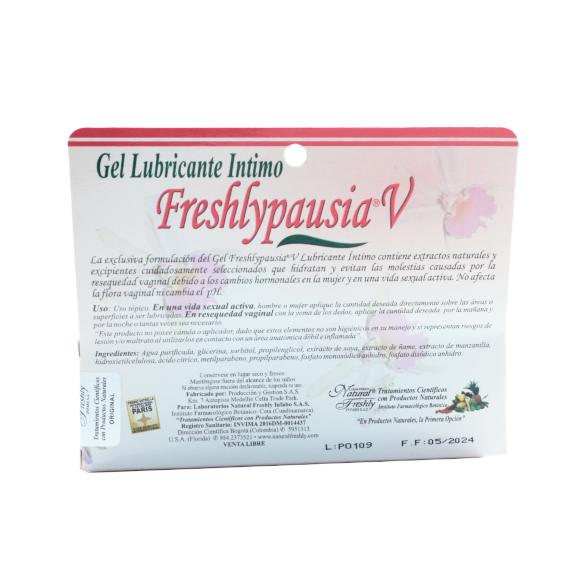 El Gel Lubricante Íntimo FreshlyPausia está especialmente formulado para aliviar la resequedad vaginal causada por cambios hormonales, como los que ocurren durante la menopausia. Sus ingredientes naturales, como las isoflavonas y el Wild Yam, ayudan a equilibrar las hormonas de manera natural, mientras que la Chamomilla proporciona un efecto calmante que reduce la irritación. Su fórmula libre de parabenos y apta para pieles sensibles lo convierte en una opción segura para el uso diario, mejorando el bienestar íntimo y restaurando la comodidad y elasticidad natural.
