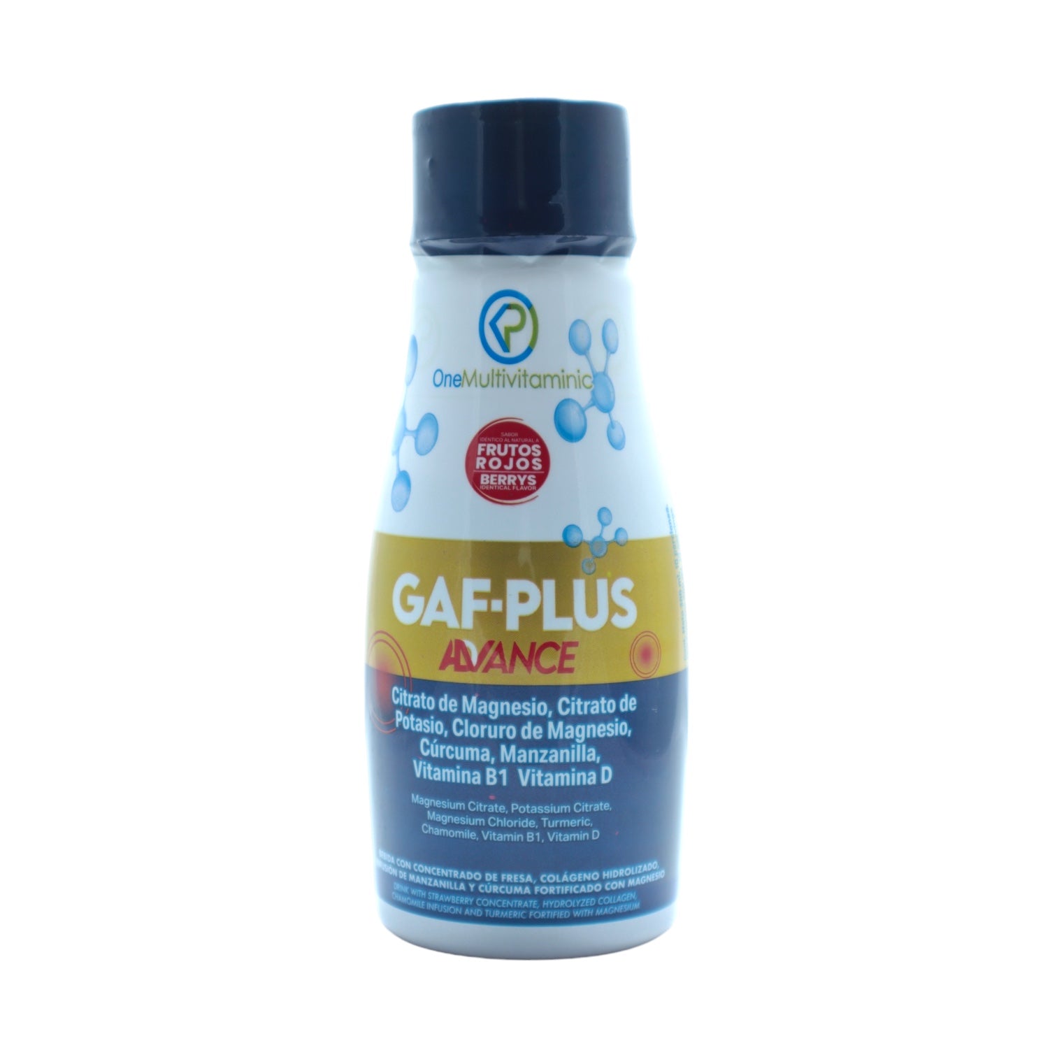 GAF-PLUS ADVANCE combina colágeno hidrolizado, cúrcuma, manzanilla, y vitaminas clave para brindar un soporte integral en la salud articular, muscular y ósea. Su fórmula potencia la regeneración de cartílagos, reduce la inflamación y alivia el dolor, favoreciendo la movilidad y el bienestar general. Además, sus minerales y vitaminas fortalecen el sistema óseo, aumentando la densidad y resistencia de los huesos para prevenir el desgaste.