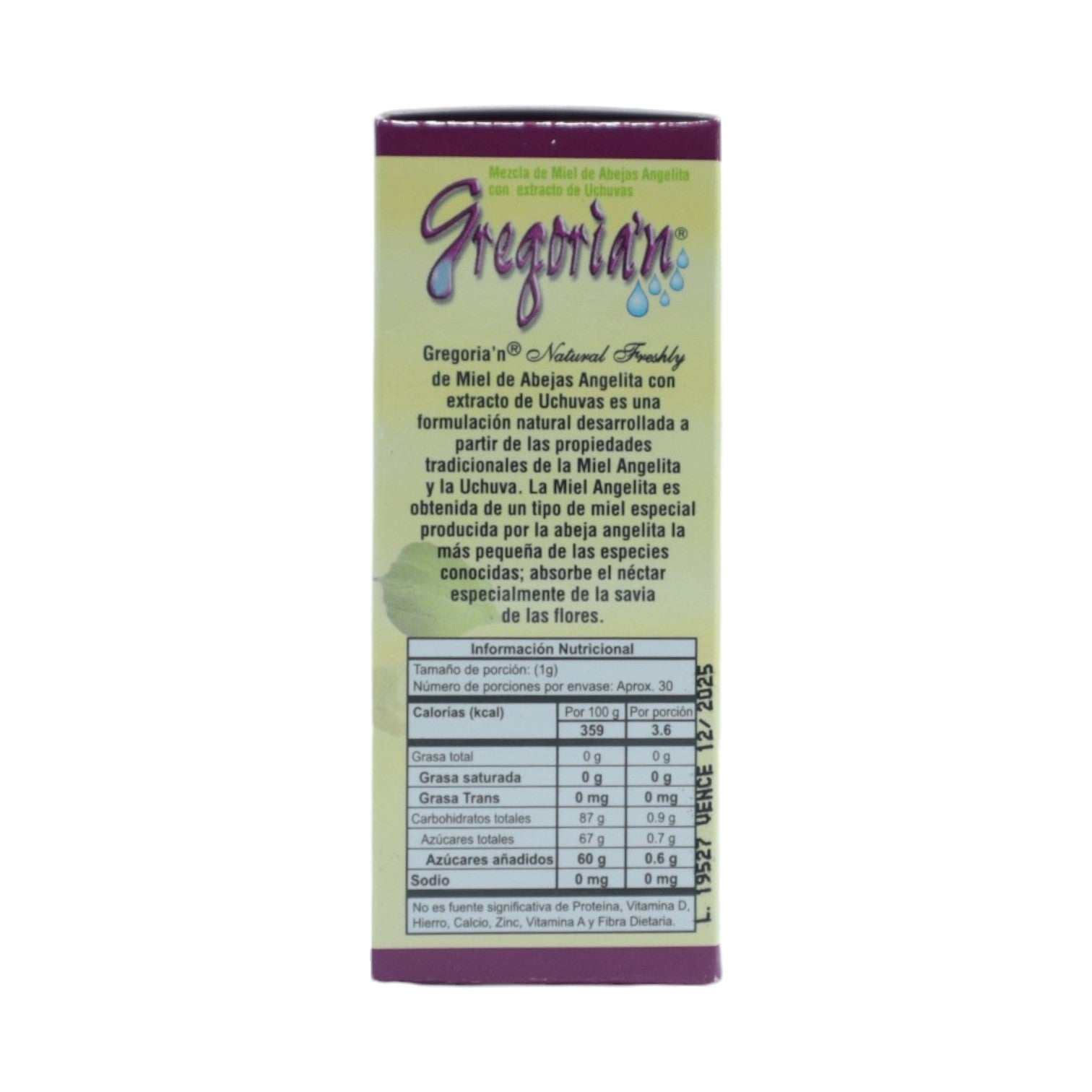 Gregorián, elaborado con miel Angelita y uchuva, es un producto diseñado para cuidar y proteger la salud ocular. Gracias a su alto contenido en antioxidantes, ayuda a prevenir y reducir el riesgo de cataratas, mientras que sus propiedades antiinflamatorias alivian la irritación en los ojos. Además, el aporte de vitaminas esenciales como la A y C contribuye a una mejor visión y protege contra el envejecimiento ocular, reforzando al mismo tiempo el sistema inmunológico para prevenir infecciones y mantener una salud visual óptima.