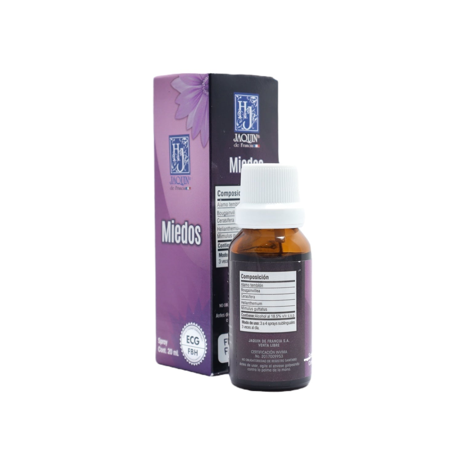 El producto "Miedos" combina esencias florales como álamo temblón, bougainvillea, cerasifera, helianthemum y mimulus guttatus, formuladas para reducir la ansiedad, aliviar miedos y fobias, y brindar un apoyo emocional completo contra la tristeza y la desesperanza. Su mezcla única promueve un equilibrio emocional duradero, ayudando a enfrentar situaciones difíciles con mayor tranquilidad y valentía.