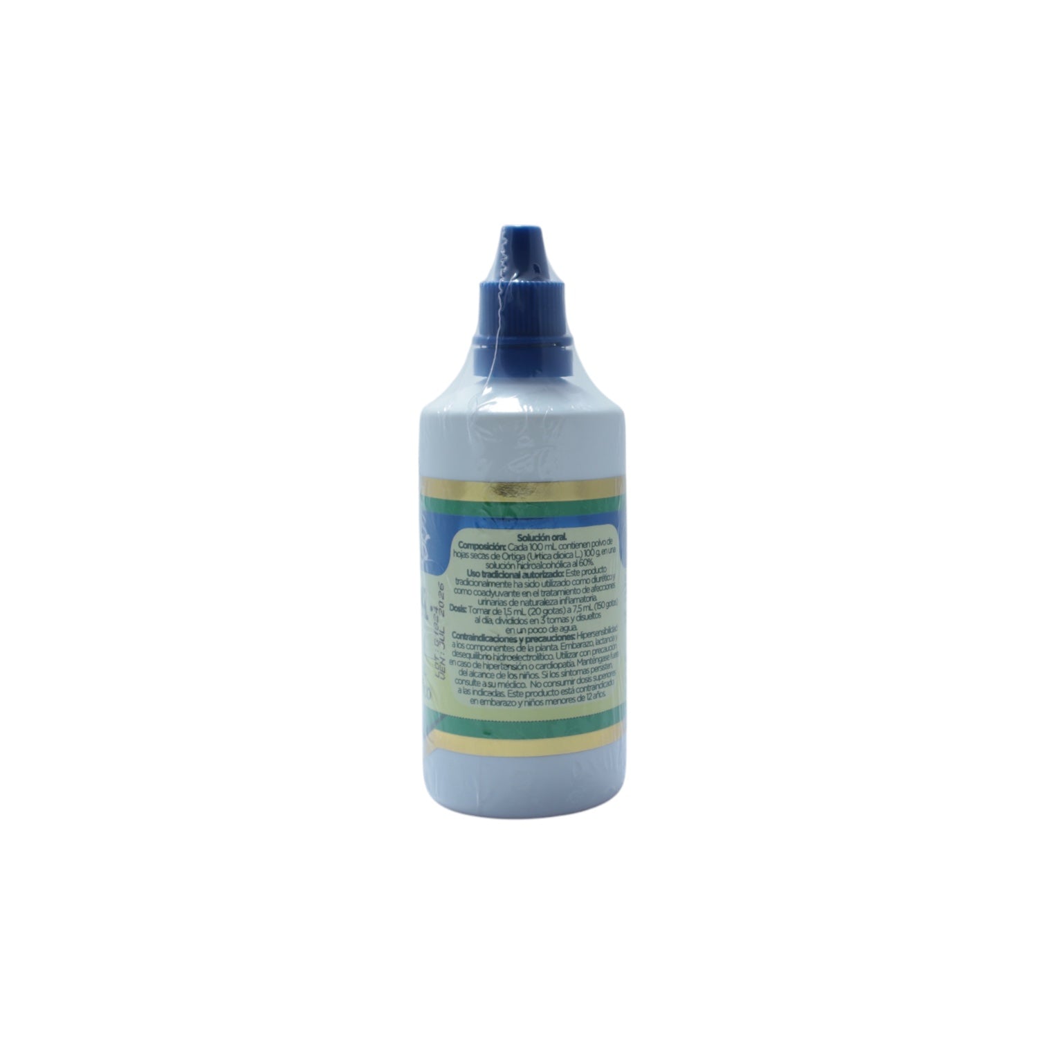 Cada 100 ml contienen polvo de hojas secas de Ortiga (Urtica dioica L.) 100 g. En una solución hidroalcohólica al 60%.