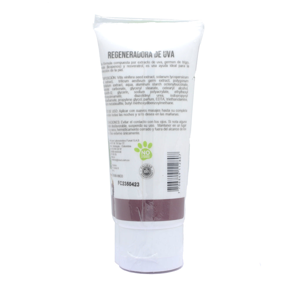 Regeneradora combina extracto de uva, germen de trigo, licopenos y resveratrol para ofrecer una poderosa fórmula que promueve la regeneración natural de la piel. Sus componentes ayudan a revitalizar las células, brindan una protección antioxidante frente al envejecimiento prematuro, y nutren profundamente para mantener una piel hidratada y flexible. Además, protegen contra los daños ambientales y mejoran la textura y el tono de la piel, proporcionando un aspecto más uniforme, joven y radiante.
