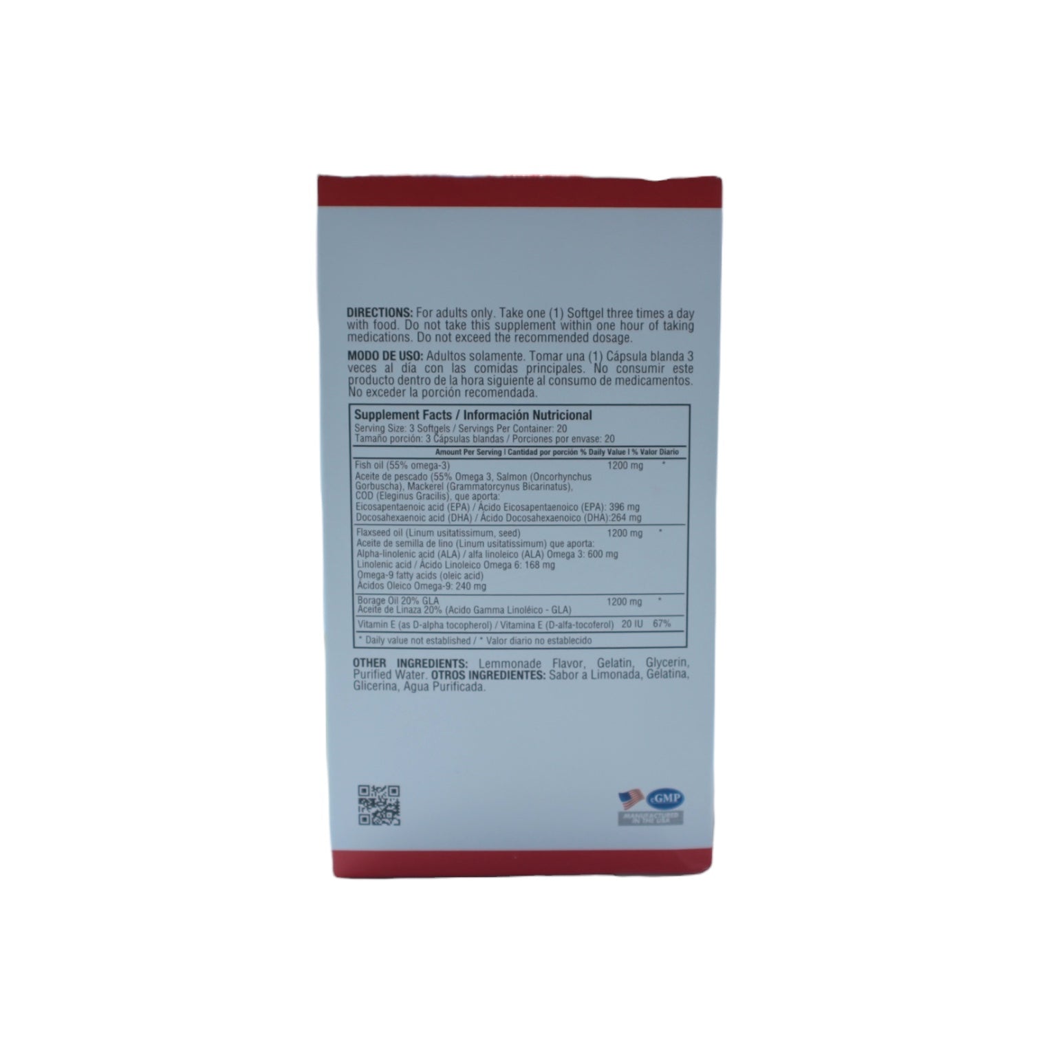 La Vitamina E incluida en la fórmula facilita la absorción y estabilidad de los ácidos grasos esenciales Omega 3-6-9, asegurando que el cuerpo obtenga el máximo beneficio de ellos.
