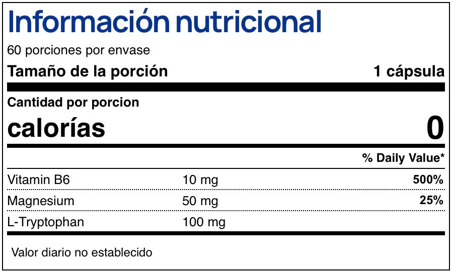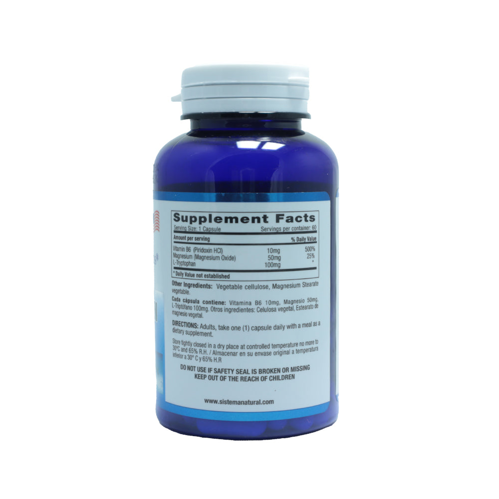 La combinación de L-triptófano, vitamina B6 y magnesio ayuda a mantener un equilibrio emocional, combatiendo la fatiga mental y física, y favoreciendo una sensación general de bienestar.
