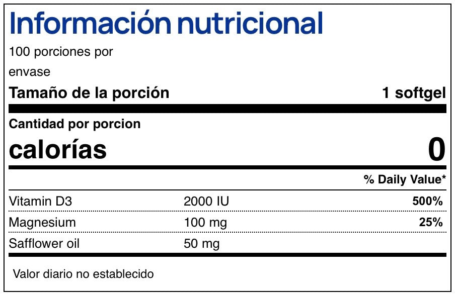 El aceite de cártamo (safflower oil) en la fórmula mejora la biodisponibilidad de la vitamina D3 y el magnesio, asegurando que el cuerpo aproveche al máximo sus beneficios.