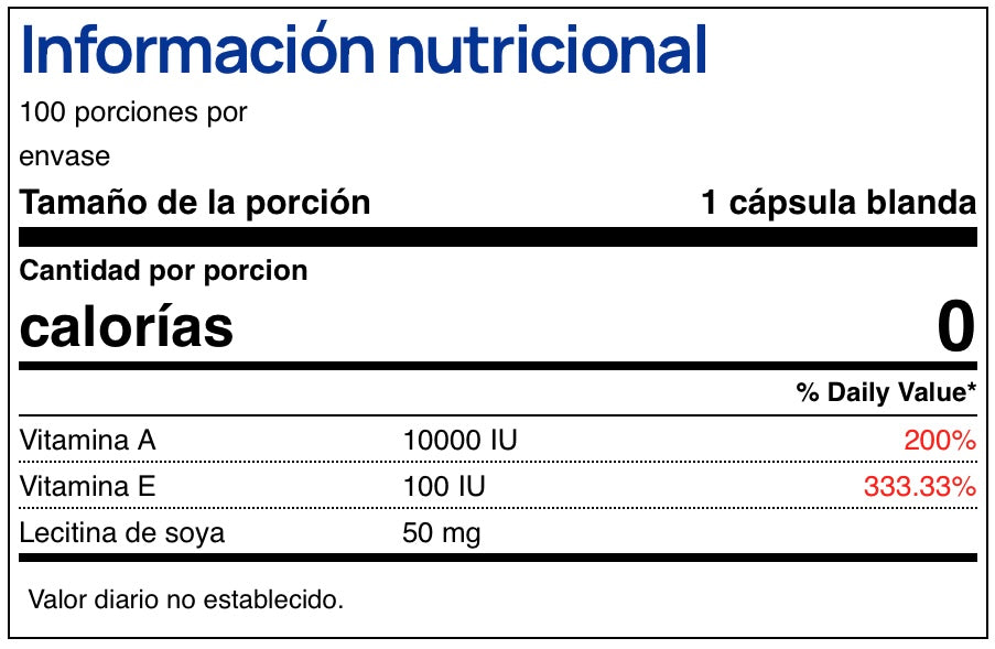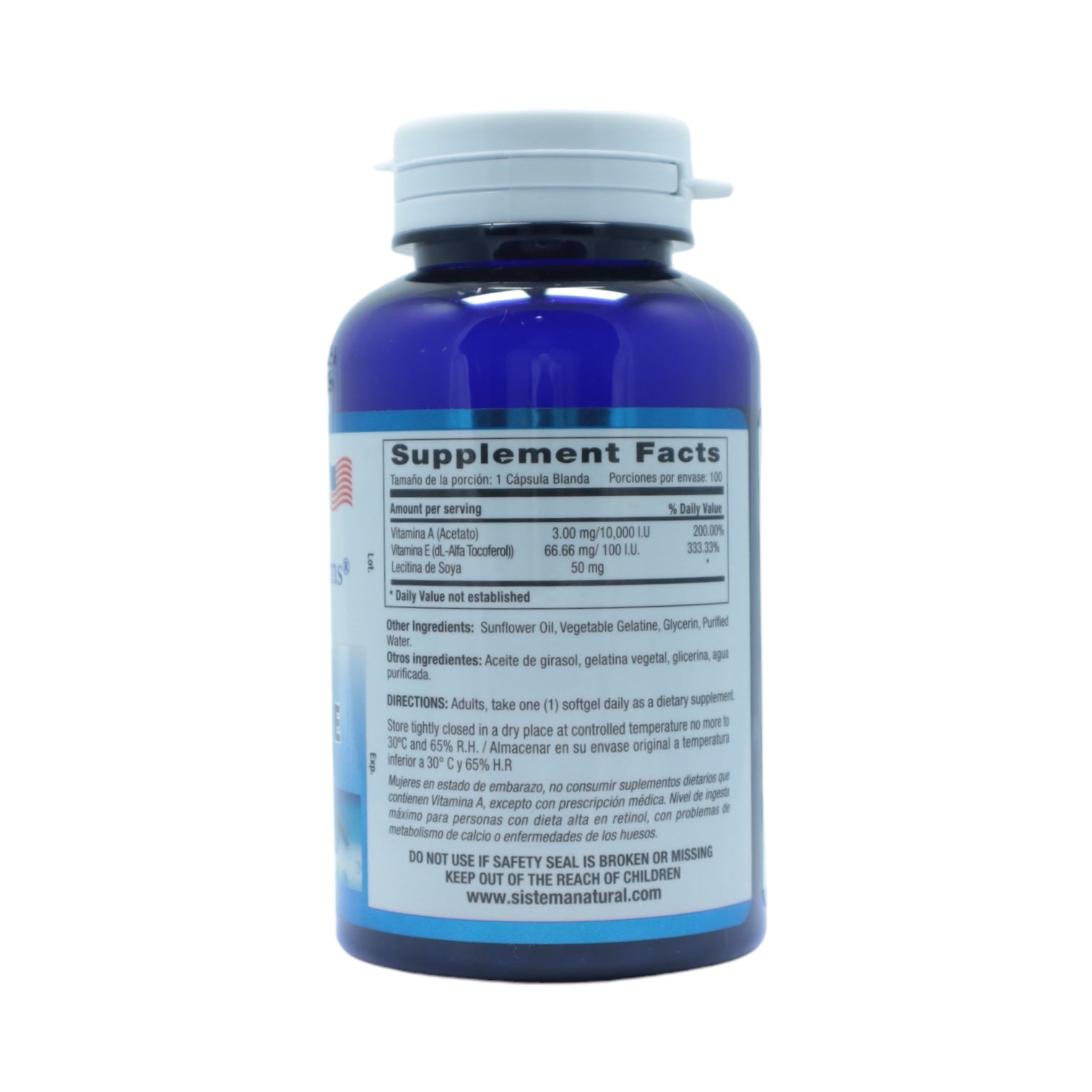 Este suplemento combina vitamina A, vitamina E y lecitina de soya, ofreciendo una fórmula completa para el cuidado de la vista. La vitamina A contribuye a mejorar la salud ocular y a proteger la córnea, mientras que la vitamina E aporta sus propiedades antioxidantes para prevenir el daño oxidativo en los ojos. Además, la lecitina de soya apoya la función cerebral y ayuda a reducir la fatiga visual, haciendo de este producto una excelente opción para quienes desean mantener una visión saludable y protegida frente al envejecimiento y la exposición a pantallas.
