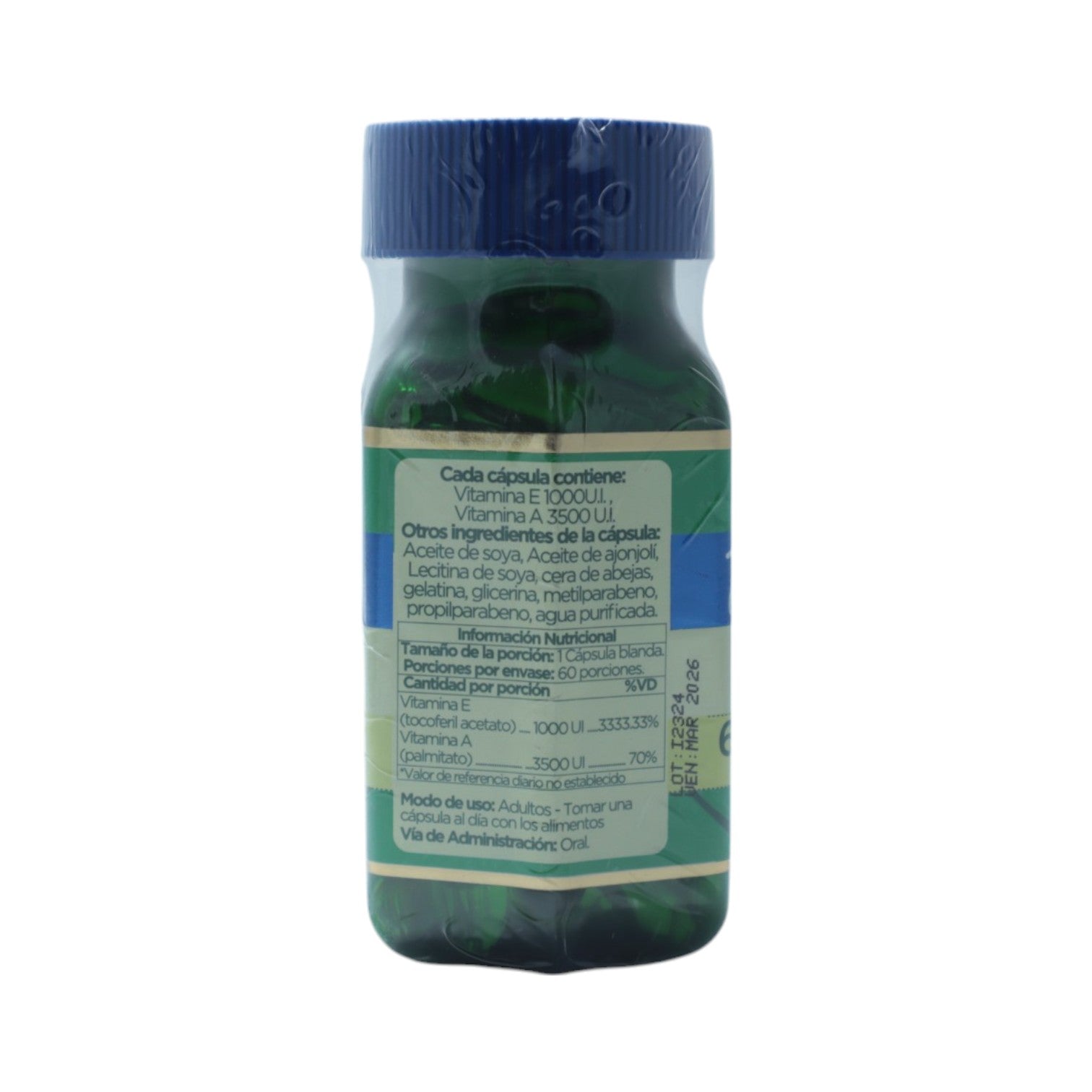 La Vitamina E 1000 con Vitamina A es un complemento que ofrece un potente efecto antioxidante, protegiendo las células del daño oxidativo. Sus beneficios incluyen mejorar la salud de la piel y el cabello, apoyar la salud femenina al contribuir a la reducción de quistes y miomas, y fortalecer el sistema inmunológico. Además, ayuda a mantener una buena salud cardiovascular al mejorar la circulación y reducir el riesgo de enfermedades del corazón.