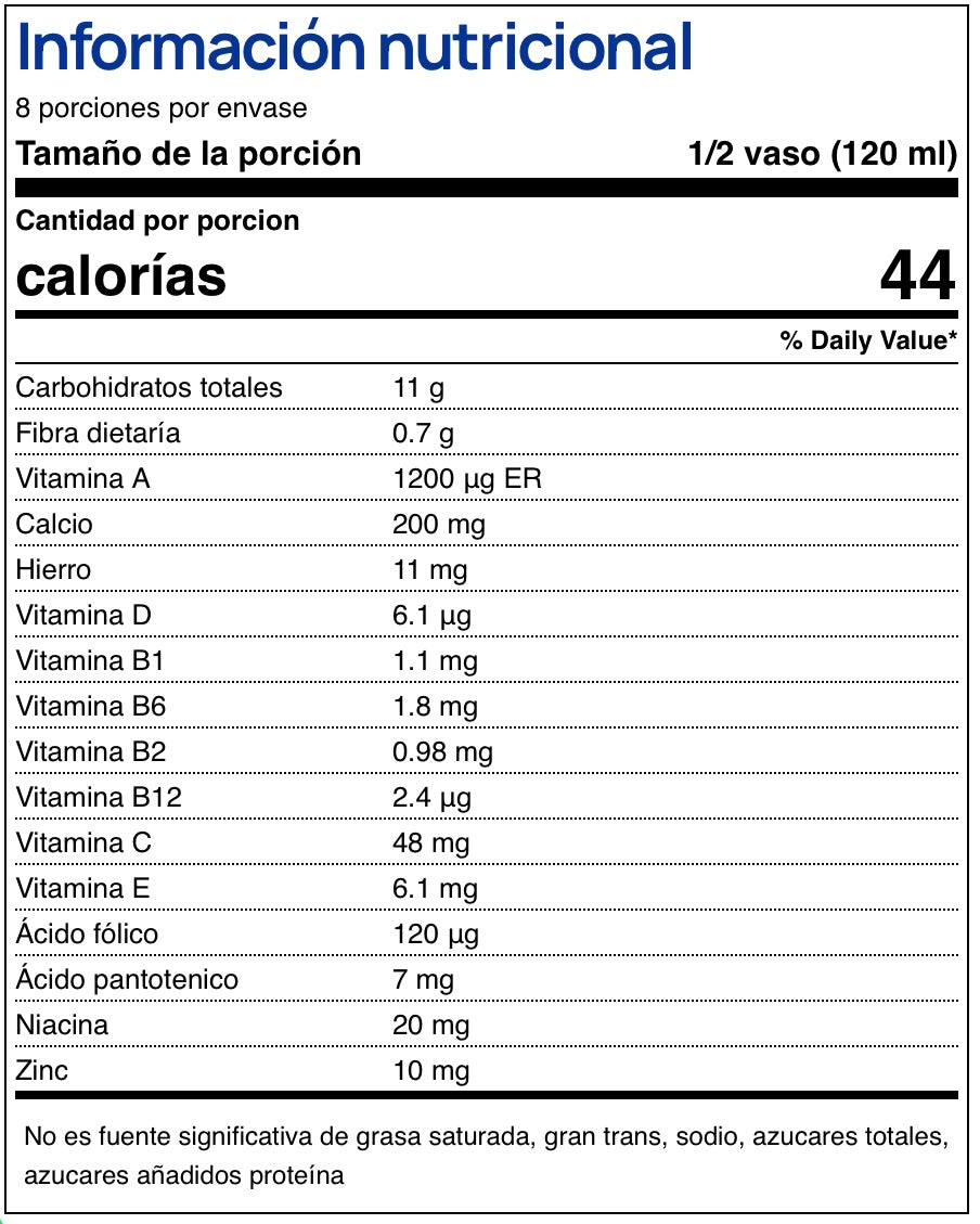 Este suplemento infantil combina hierro, zinc y una potente mezcla de vitaminas A, B1, B2, B6, B12 y C, brindando un apoyo integral al desarrollo de los niños. Refuerza el sistema inmunológico, ayuda en el crecimiento saludable de huesos y músculos, mejora la salud ocular, y favorece el desarrollo cognitivo. Además, contribuye a la producción de energía, manteniendo a los niños activos y con vitalidad durante todo el día.